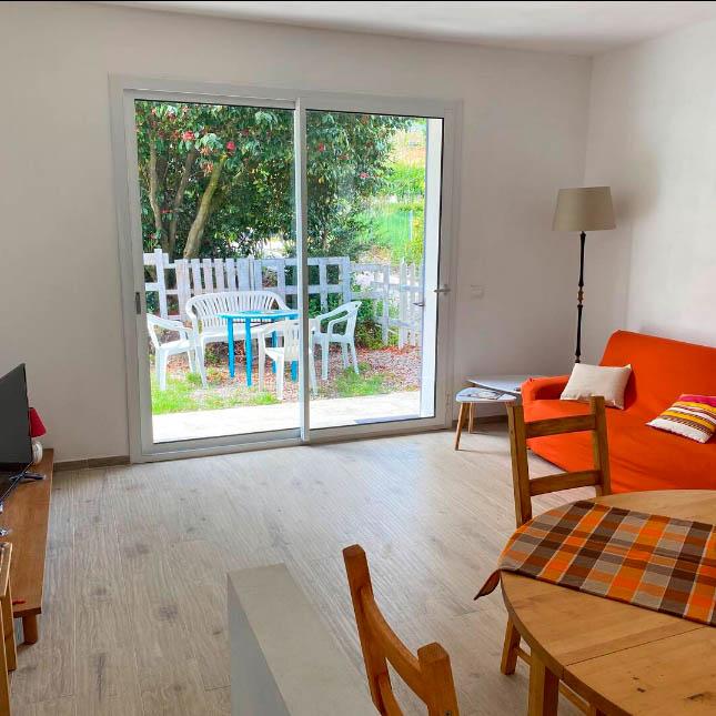 Die Wohnung ROSSO befindet sich im Erdgeschoss und ist auch für gehbehinderte Personen geeignet! Eingang ohne Stufen. Die komplett neu eingerichtete und gut ausgestattete Ferienwohnung ROSSO in der kleinen Wohnanlage Carlotta besteht aus einem gemütlichen lichtdurchfluteten Wohn-Essbereich, den man direkt betritt, wenn man das Appartement durch den kleinen Privatgarten betritt.